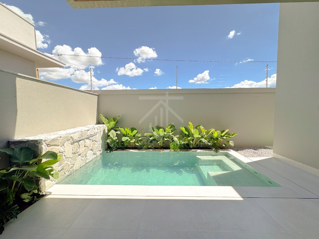 Piscina aquecida, com hidro e cascata