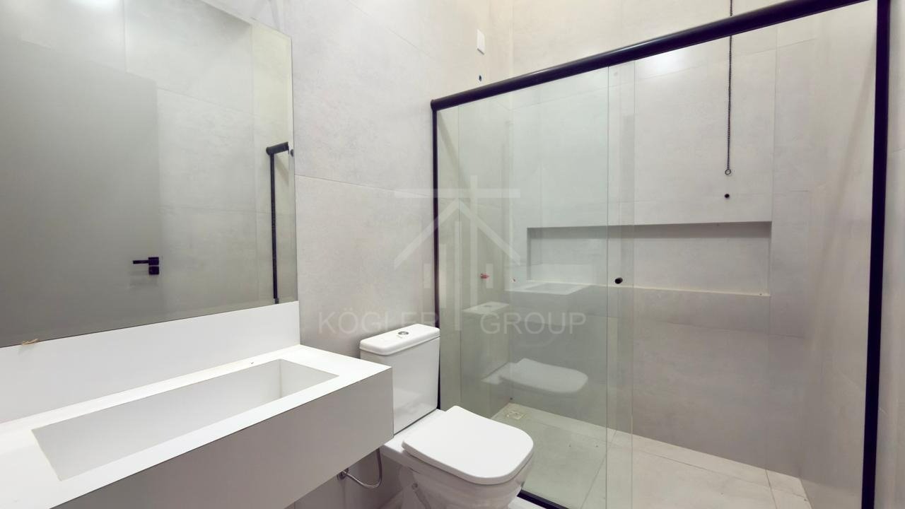 Banheiros completos com box, vaso sanitário, pias e espelhos