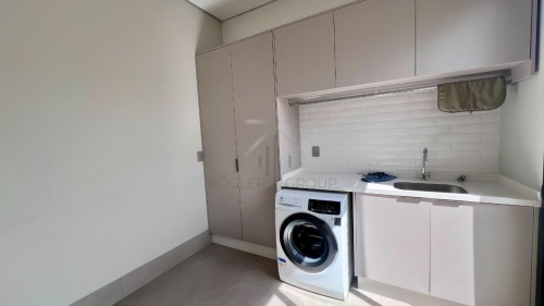 LAVANDERIA COM MÓVEIS PLANEJADOS E LAVADORA.