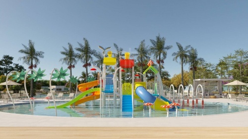 ? Piscina externa com playground aquático.