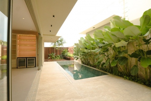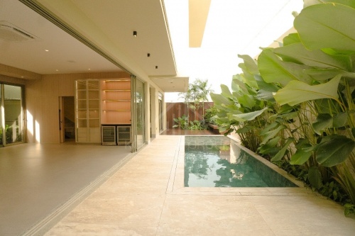 Traventino em volta da piscina