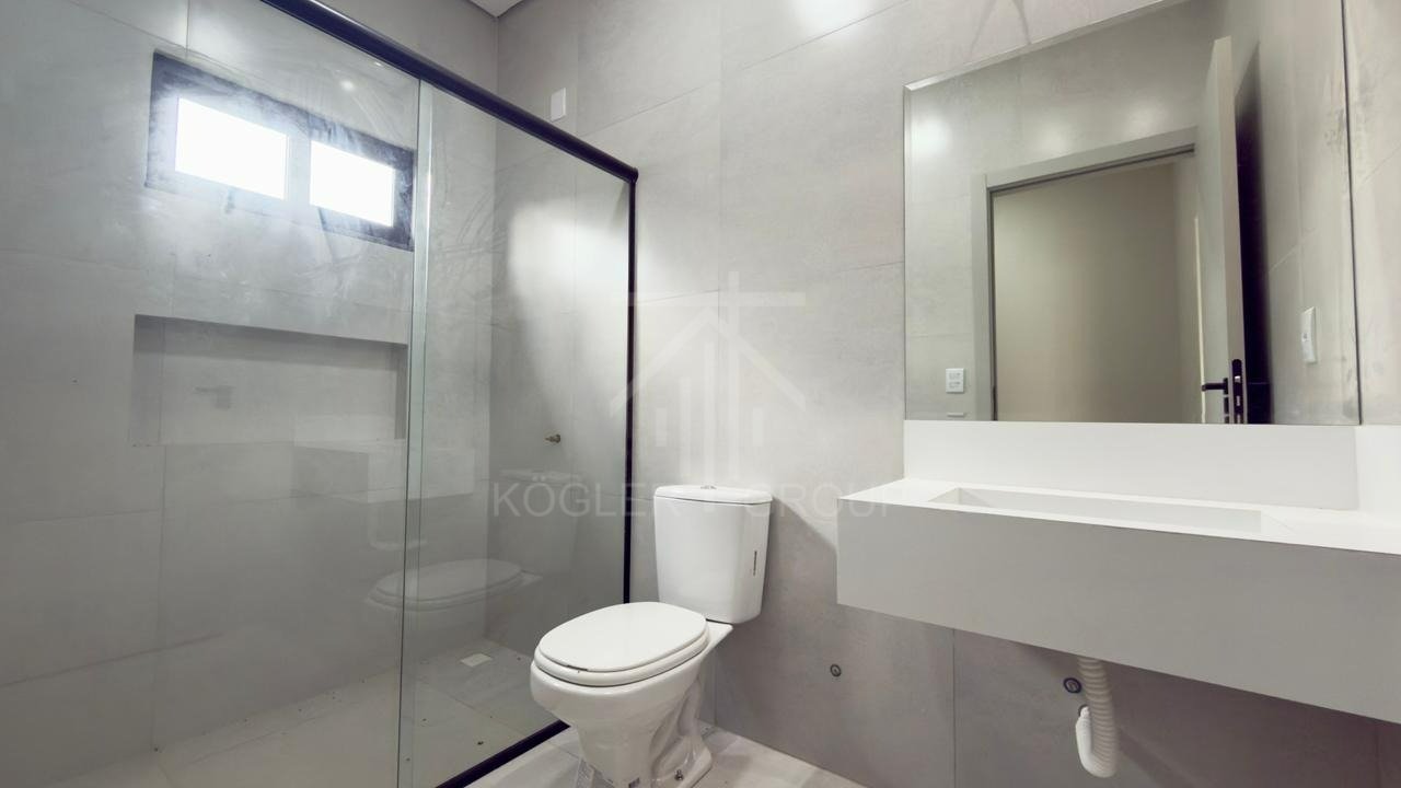 Banheiros completos com box, vaso sanitário, pias e espelhos