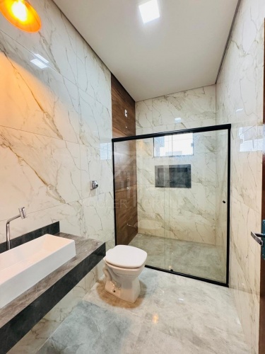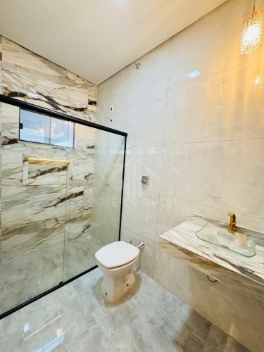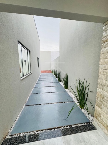 CASA COM EXCELENTE PADRÃO DE ACABAMENTO, COMPOSTA POR 3 QUARTOS (SENDO 1 SUÍTE), BANHEIRO SOCIAL, SALA, COZINHA COM CHURRASQUEIRA, LAVANDERIA E GARAGEM PARA 2 CARROS.